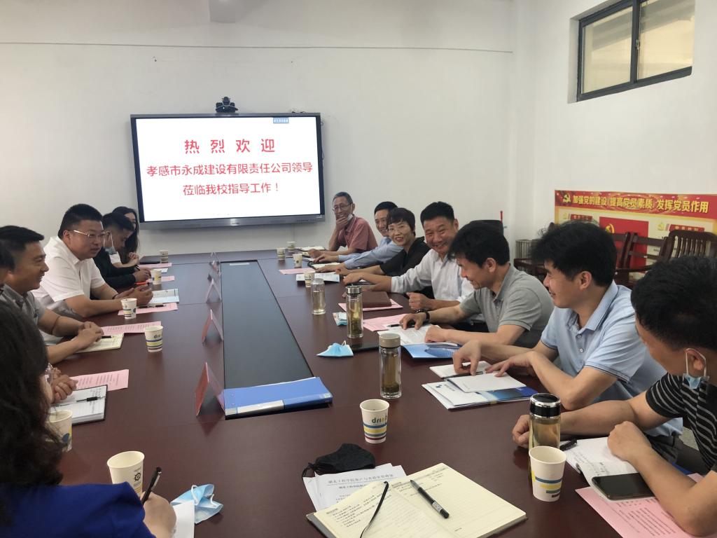 5月26日,孝感市永成建设有限责任公司董事长李保国、副总经理兰宏鹏、总工程师杨璐、项目部经理刘义来学院商谈校企合作事宜,公司与土木学院的领导班子和部分骨干教师参加了座谈。