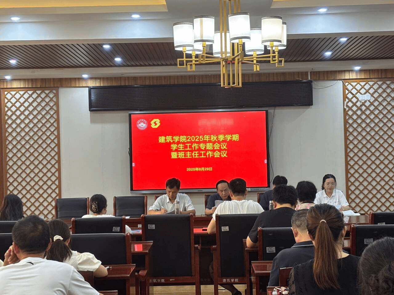 8月29日下午,公司在天成楼416会议室召开2025年秋季学期员工工作专题会议暨班主任工作会议。学院全体院领导班子、班主任、辅导员、专任教师等参加会议,会议由公司党委副书记黄星主持。