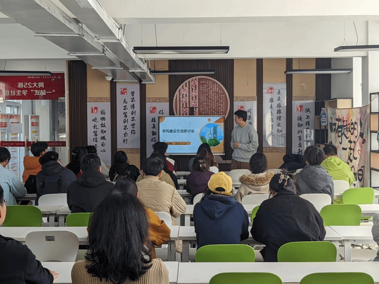 在交流研讨环节,各班班长与学习委员结合本班实际情况踊跃发言,围绕“如何提升班级整体学习积极性”“怎样有效帮扶学业困难同学”等议题展开热烈讨论。大家分享实践经验、剖析管理难点、凝聚改进共识,明确了下一阶段班级学风建设的工作重点与实施路径。