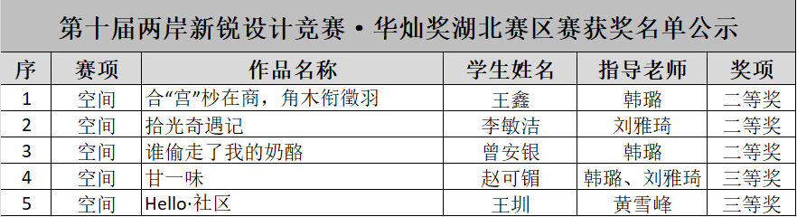 两岸新锐设计竞赛“华灿奖”湖北赛区评审获奖结果公示官网链接